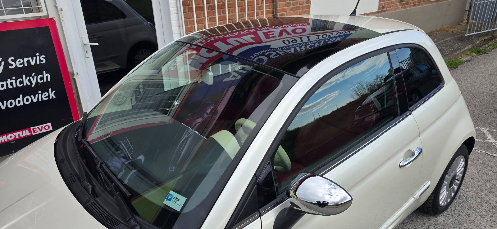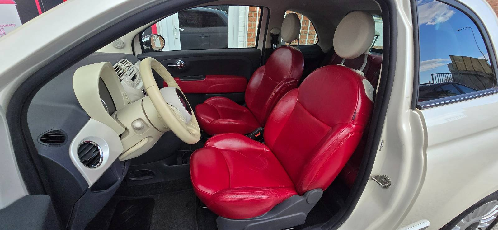 FIAT 500 1.2 Lounge s automatickou prevodovkou. Malé mestské auto. Interiér v červenej koži. Vykonaný servis automatickej prevodovky, vyčistený interiér. 2ks kľúč. Slovenské papiere, stačí vykonať prepis. Možný odpočet DPH.