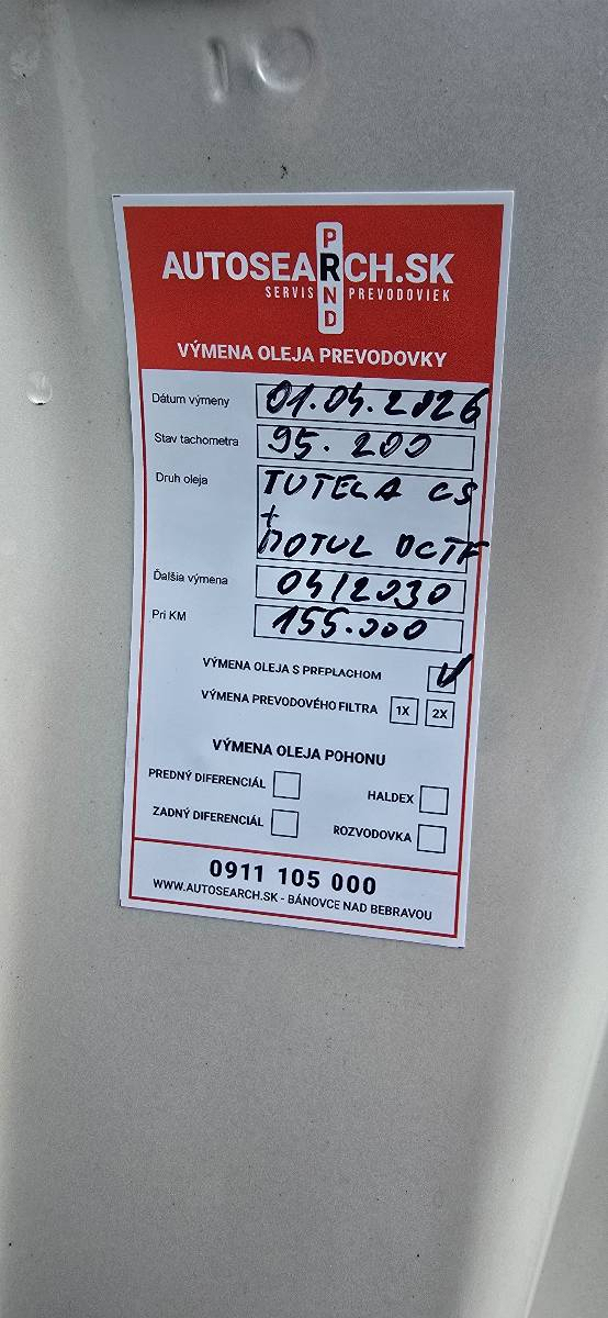 - Servis automatickej prevodovky: 2x olejová náplň, kalibrácia spojky, čistenie systému robota